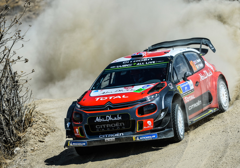 Citroen stole limelight as Sebastien Loeb was back with the team. His low starting position more than compensated his lack of recent experience but puncture on SS14 dropped him for the lead. Meeke (pictured) then became leading Citroen but slid into a ditch and managed only third.
