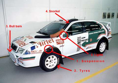 Other changes include larger fuel tank to allow for longer distances, both in competitive and road sections. To combat scorching sun cars have had completely mirror-coated side and rear windows.